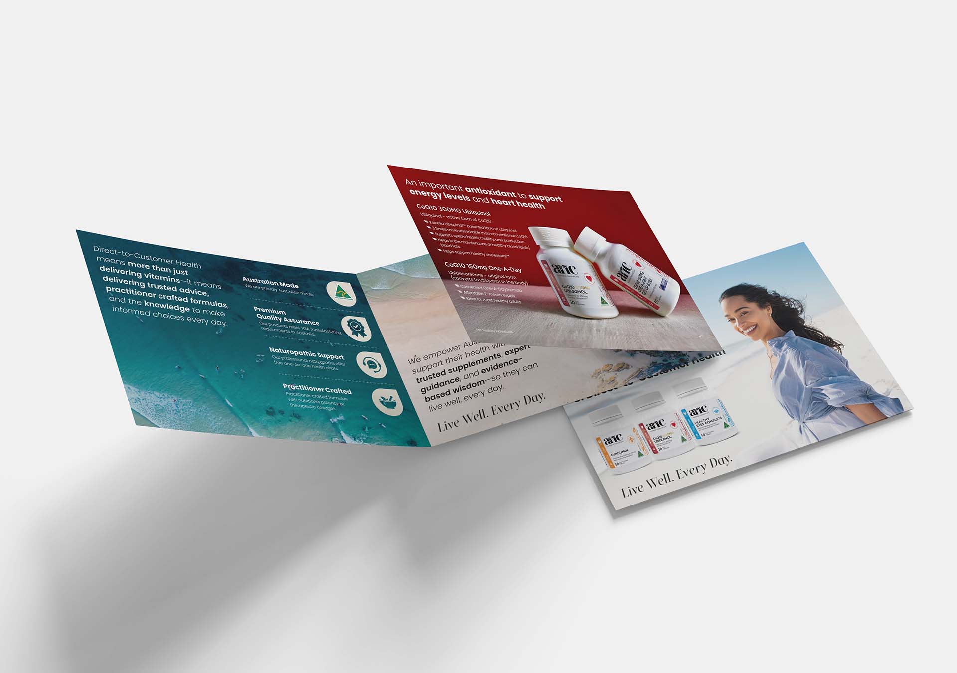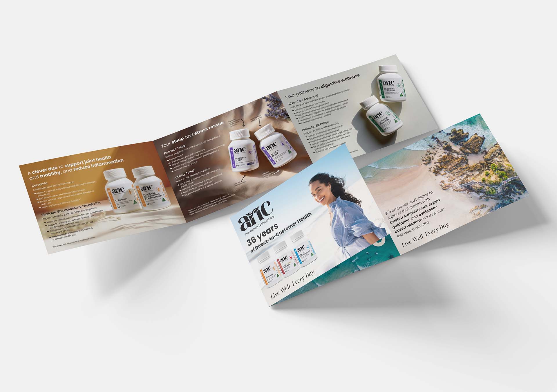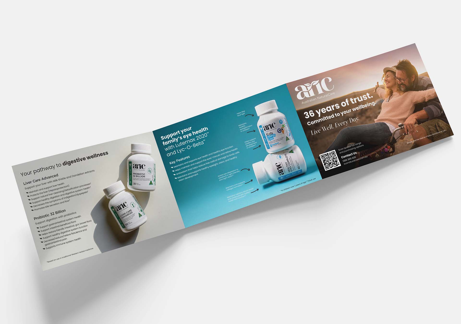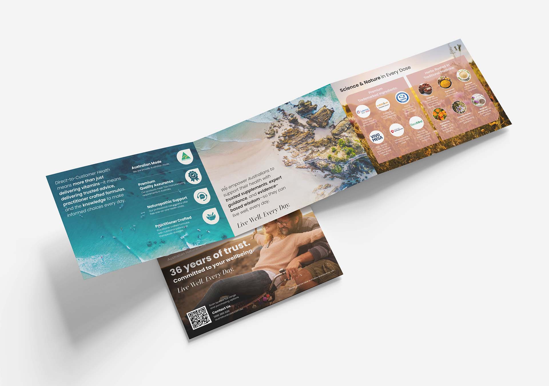 This brochure was designed to organise detailed supplement information into a clear, easy-to-navigate format using strong typography, structured layout, and consistent brand styling.
