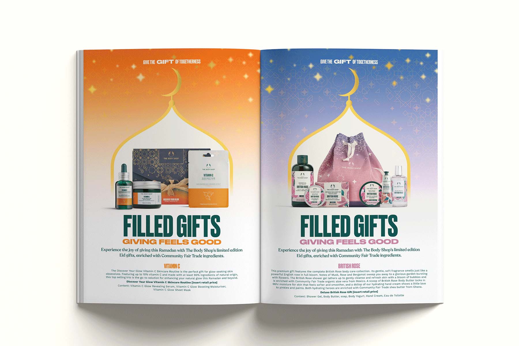 Designed a seasonal Ramadan catalogue for The Body Shop, showcasing curated gift sets and product collections for the holy month. The catalogue balances clear product presentation with culturally relevant, warm visuals while staying true to The Body Shop’s ethical and natural brand identity.