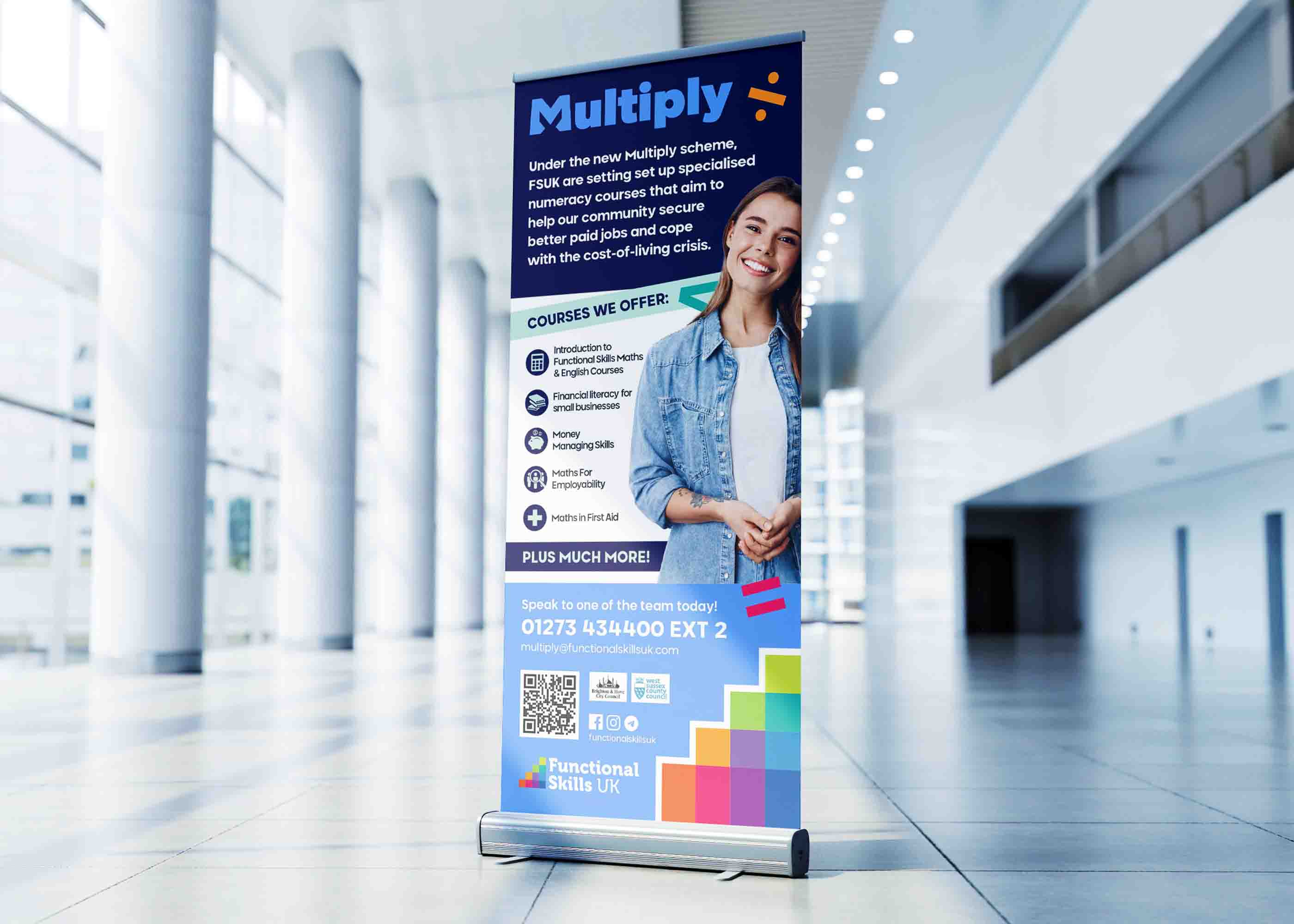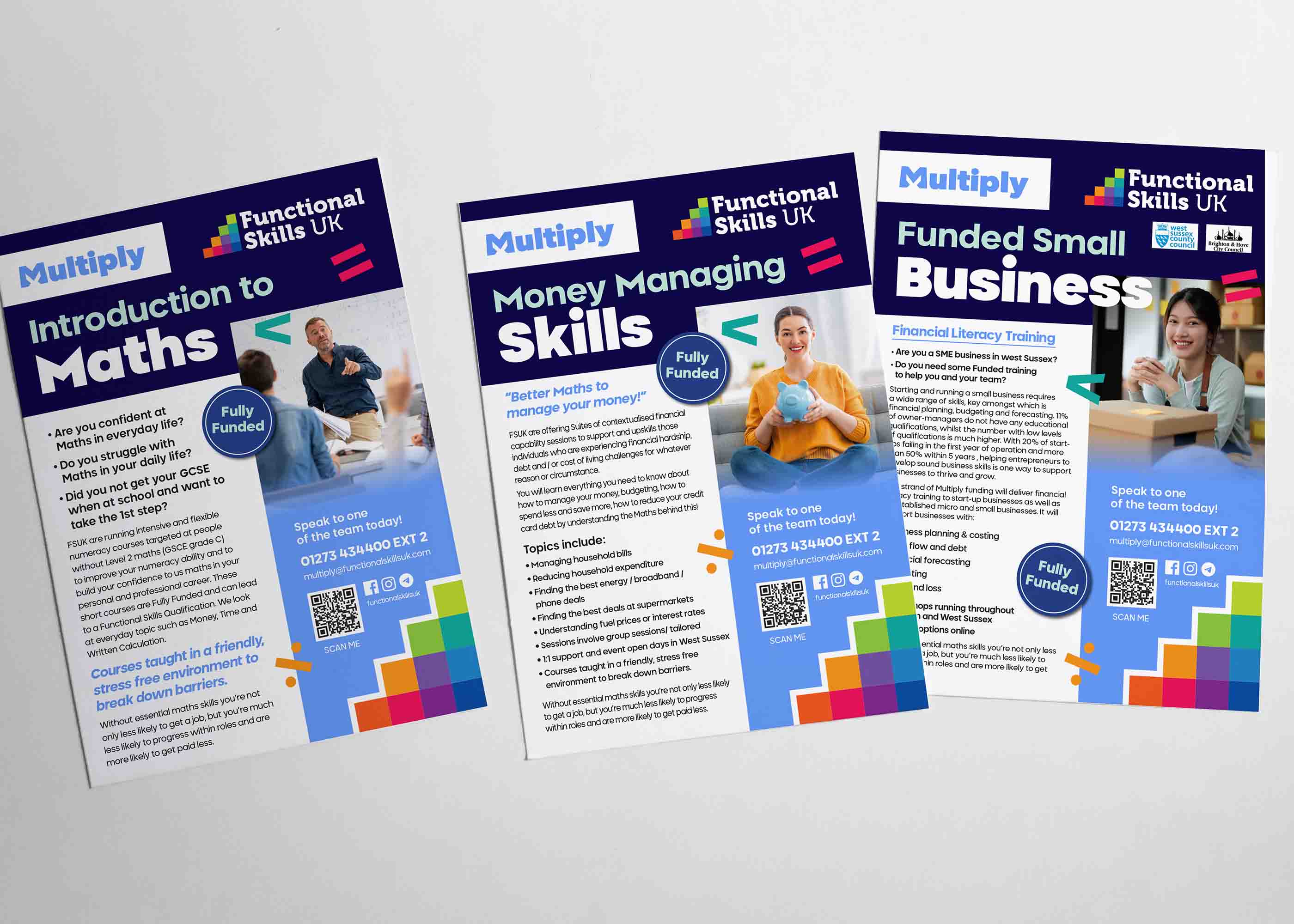I have had the privilege of collaborating with Functional Skills UK and Multiply, leading providers of essential Math, English, and ICT qualifications. With a focus on empowering learners of all ages, my role has been to create impactful print and digital assets that effectively communicate the importance of these skills in both employment and everyday life. From eye-catching flyers to versatile pull-up banners, my designs have played a crucial role in capturing attention, engaging learners, and highlighting the value of functional skills.